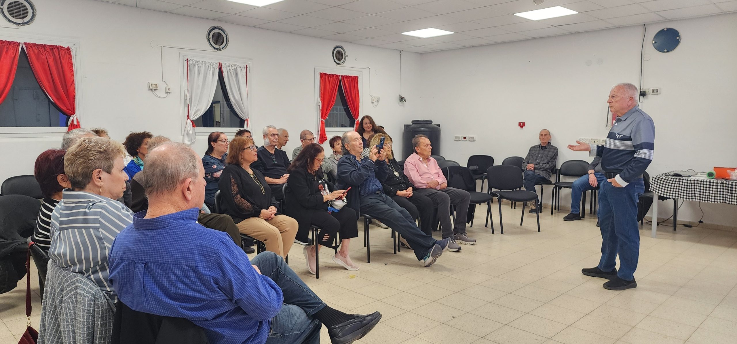 איציק גואטה, גמלאי חברת החשמל, הרצה על משק האנרגיה בישראל והתפתחות הטכנולוגיה בקריאת מונים.