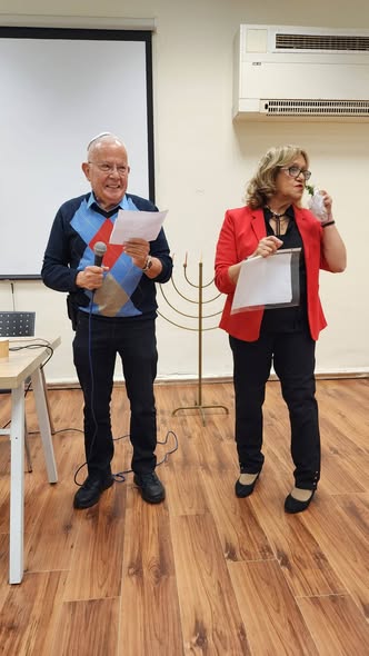 חברי לשכת בני ברית, כפר סבא, מציינים את חג החנוכה בחברותא מלוכדת ושמחה.