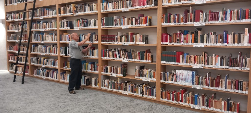 כולם ממוינים, מסודרים על המדפים וניתנים לשליפה מהירה לצורך עיון. ניתן לעיין בספרים בפינה שקטה באולם הספרייה. אין השאלת ספרים. כיום אני משמש גם בתפקיד של ספרן המוזיאון. ממשיך להכניס למאגר ספרים חדשים, ומתאם ומקיים פגישות בספרייה עם מגוון אנשים הרוצים למצוא מידע בנושא של גבורה יהודית במלחמת העולם השנייה. אני נמצא פיזית במוזיאון 4 ימים בשבוע משעות הבוקר המוקדמות ועד לשעות הצהריים.